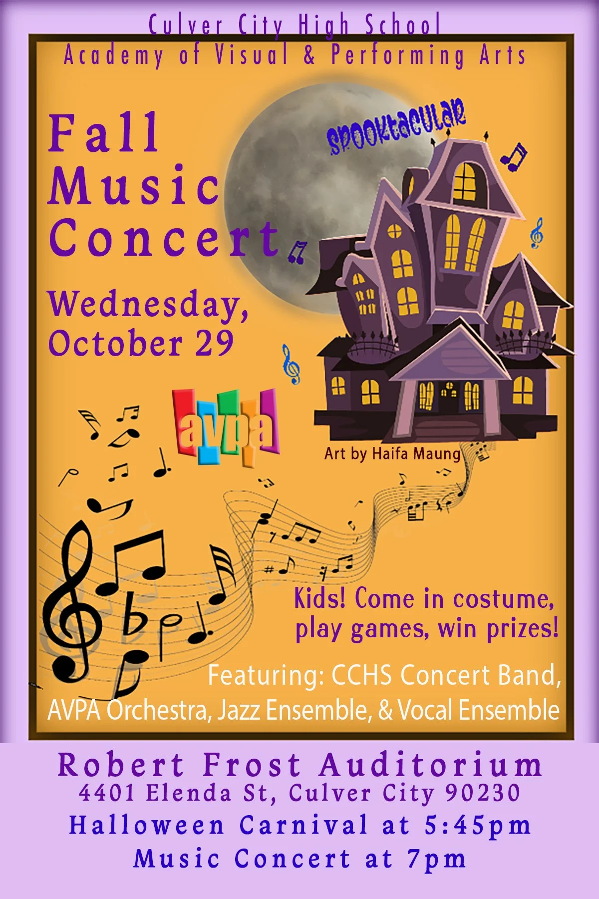 Fall Music Concert & Halloween Carnival AVPA Music Sep 29 Written By Tony Spano Wednesday, October 29Carnival begins at 5:45pmMusic Concert begins at 7pm | Robert Frost AuditoriumMore info coming soon! Tony Spano